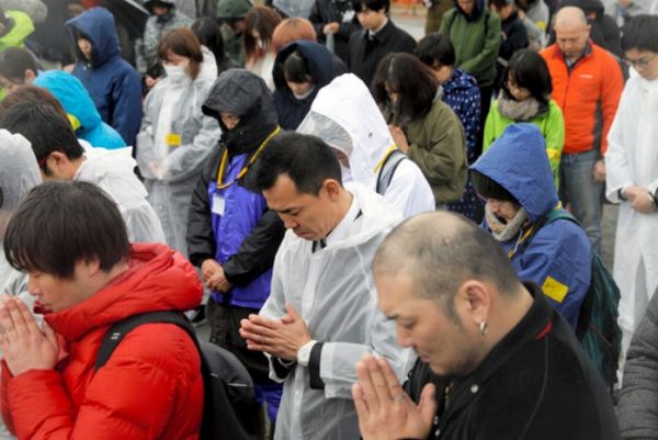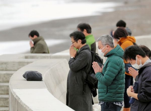 地震のあった午後2時46分、各地で犠牲者を悼む鎮魂の祈りが広がった。