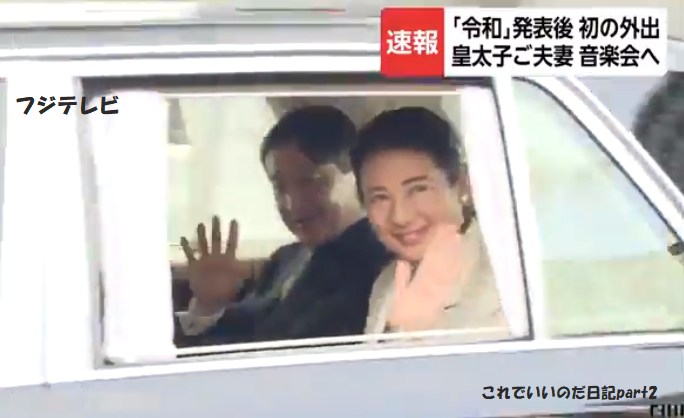 新たな元号「令和」の発表後、皇太子ご夫妻が外出されるのは初めて。