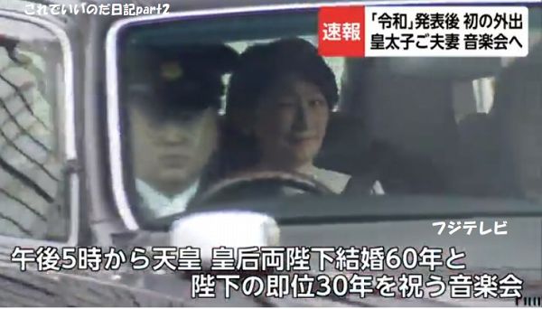丁度テレビを付けたら音楽会ご鑑賞のニュースをやっていました。雅子さん、肌ツヤツヤでニコニコじゃないですか。とても元気そうだと思いました。