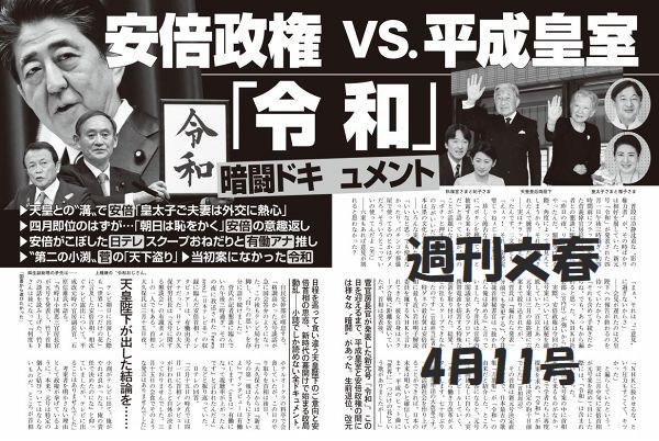 「週刊文春」1部は新元号発表までのエピソードと秋篠宮殿下不信など