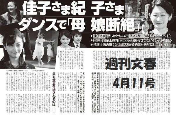 「週刊文春」の2部は紀子さまと佳子さまの親子関係と小室圭親子のこと