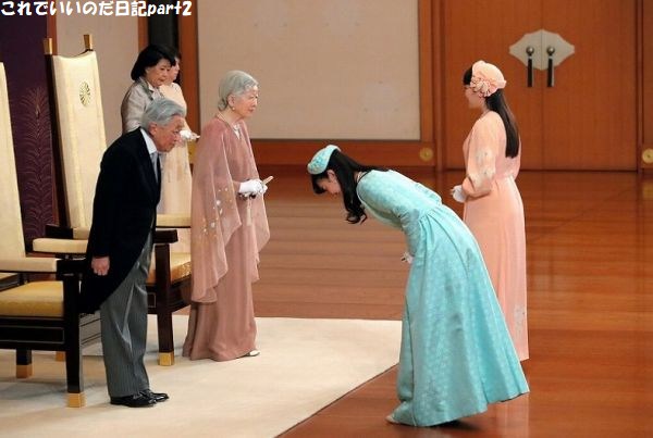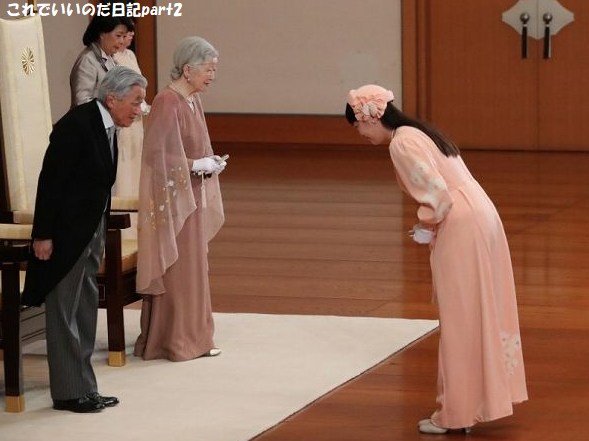 まず眞子さまの単独、昼に眞子佳子さん二人が陛下の前に並んでお礼の映像を拝見しました。