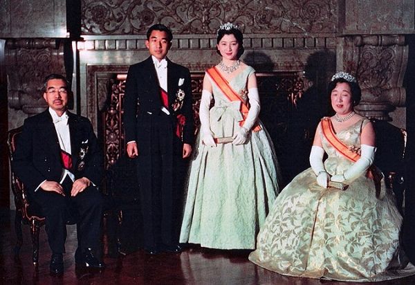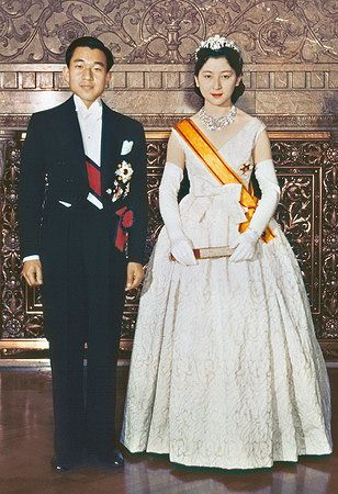 結婚式当日、「朝見の儀」を終え、記念撮影される天皇、皇后両陛下=1959年4月10日、皇居
