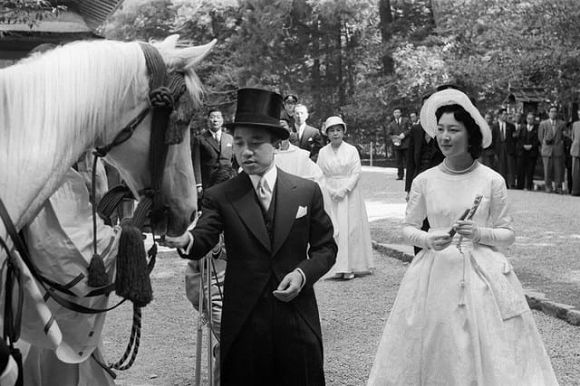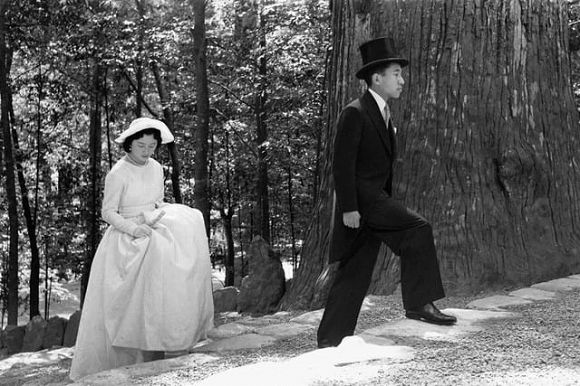 1959年04月18日婚の報告のため伊勢神宮内宮に参拝された当時の皇太子と美智子さま。