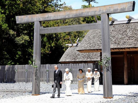 天皇陛下はこの日午前、豊受大神(とようけのおおみかみ)をまつる外宮に参拝。
