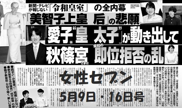 である。波乱含みの新時代が、幕を開ける。(女性セブン冒頭大きな文字で)