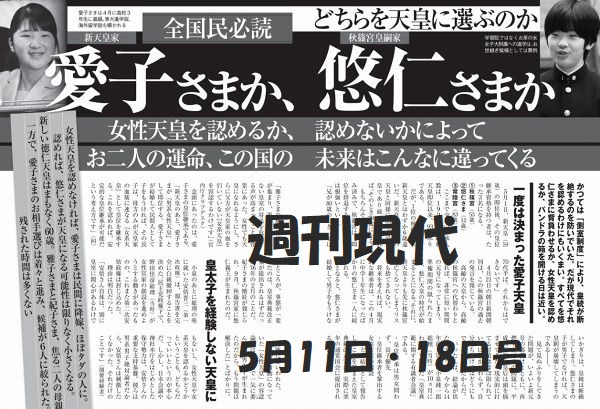 他に今週発売の週刊現代にも、秋篠宮殿下の
