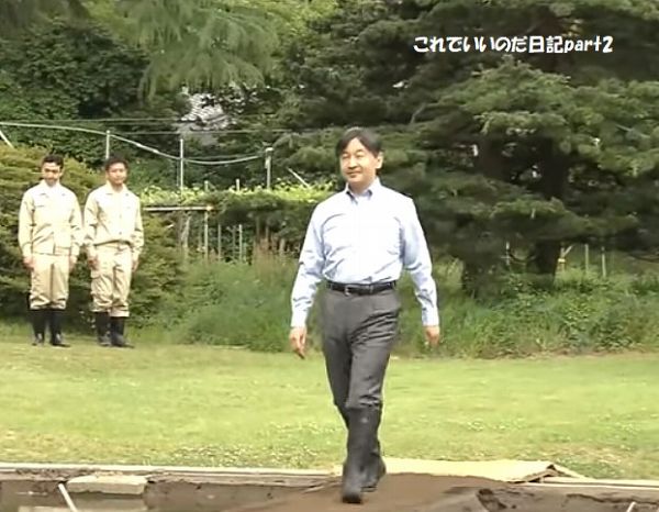 上皇の田植えと同じファッションでした。上皇は長靴が似合うけど