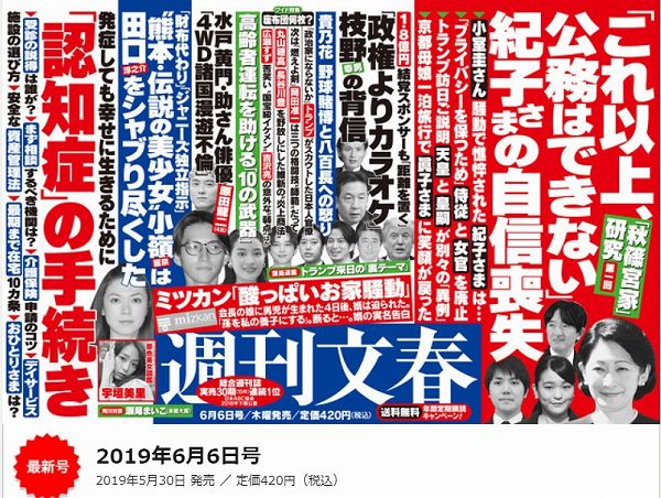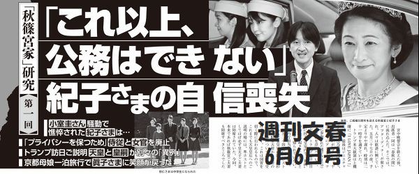 週刊文春が中吊り見出しに大きく紹介した紀子さまの