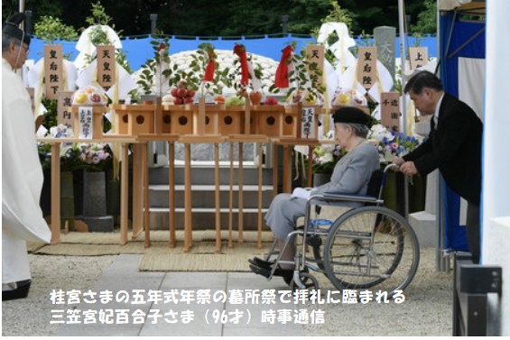 天皇、皇后両陛下は慣例で参列せず、同日夕、桂宮さまの墓を参拝された。