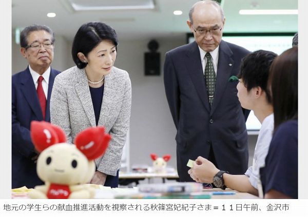 紀子さまは県赤十字血液センター(同市)も視察された。