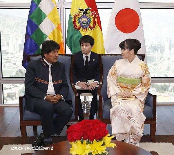 mayuさん、こんばんは。モラレス大統領と振袖姿の眞子さま。もの凄く素敵。。。これよこれ、こういうのが見たかったのー。と叫びたい。出発前は、南米かあ、、、小室に会うかもとか言われてるし、、、な気持ちでした。が、素直な心で喜んでる自分がいます。mayuさん、ありがとうございます。