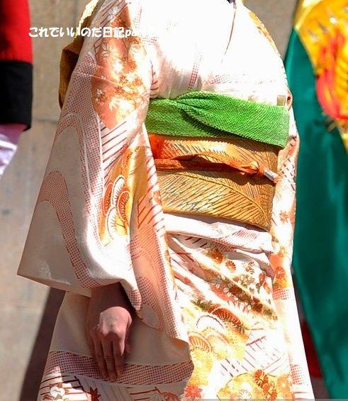 ちなみに、帯のほうは、皇嗣妃殿下が御若い時分、御使いになられたもので、今は姫宮様が今回も含めて何度か、御使いになられておられます。