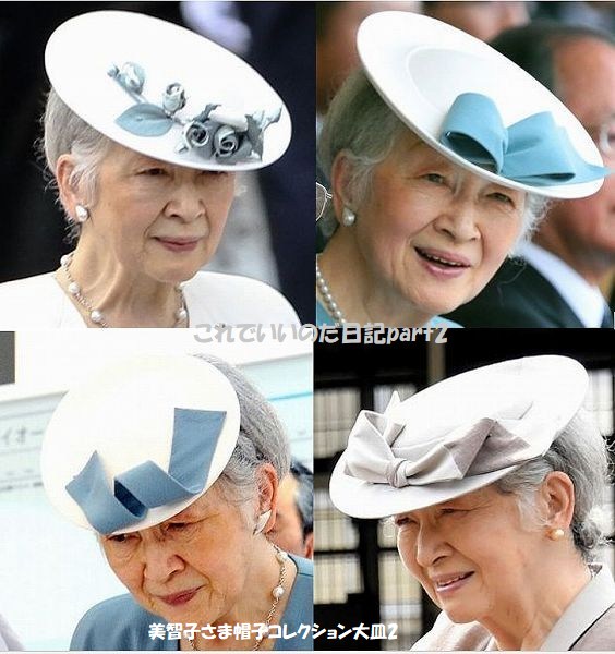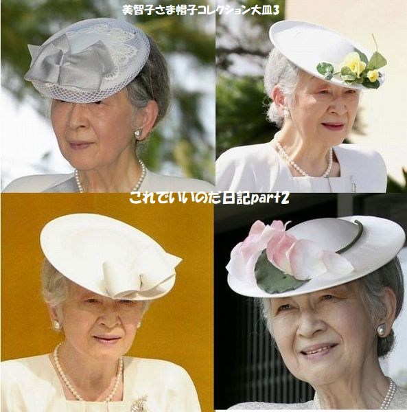 さて、上皇后様のお帽子コレクション。大きいものなら違和感無いのですね、改めてみるとそう思います。