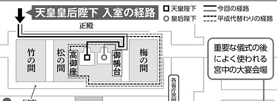 回廊を歩くシーンが無くなったと知り、平成の即位礼を生中継で観て