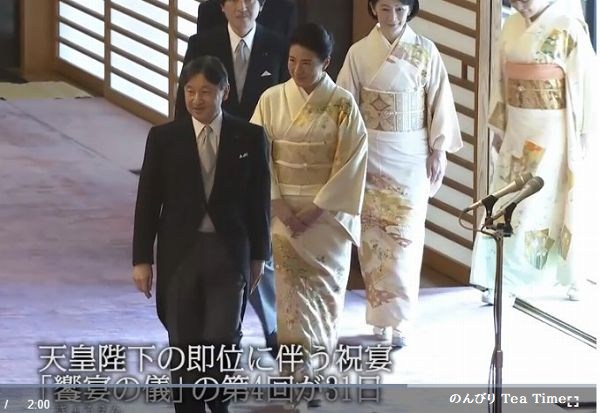 4回目最後の饗宴の儀では和装でしたが、秋篠宮家の画像を探すことが
