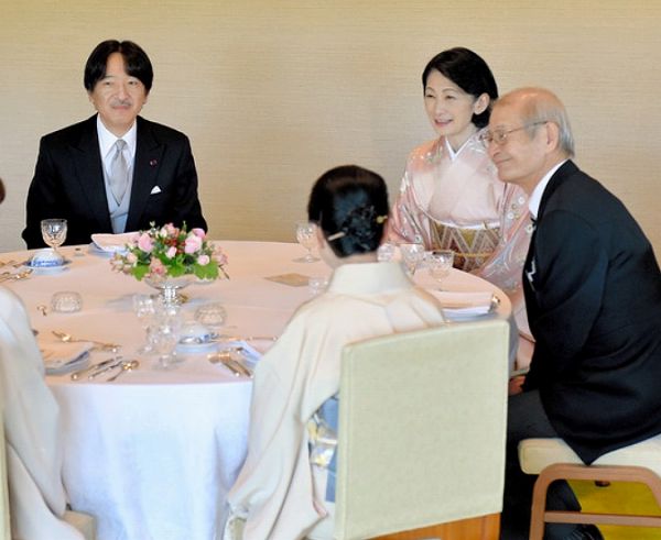 ここ数年の文化勲章受章者らを招いてのお茶会は、美智子さま、紀子さまが着物で