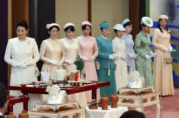 大饗の儀、女性皇族方と並ぶ雅子さまがすご~く大きく見えて、一瞬びっくりしました。一段高い所にいらしたんですね(汗)。