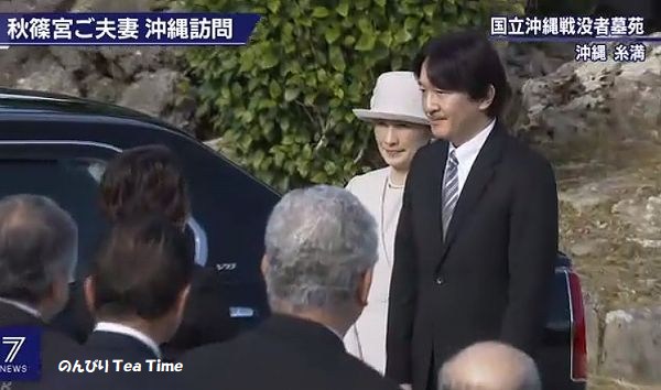 ご夫妻は那覇空港から糸満市の国立沖縄戦没者墓苑に向かい、献花台に