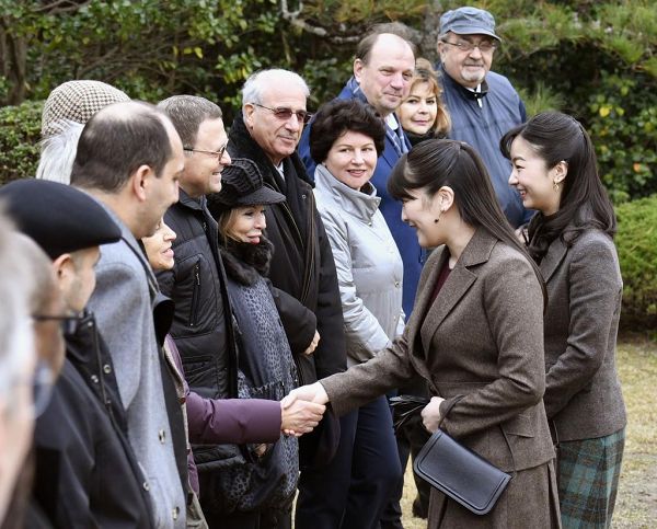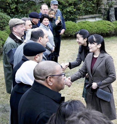 眞子さま、佳子さまの笑顔がいいですね。特に佳子さまは心から楽しんでいらっしゃるようです。笑顔が紀子さまによく似ていらっしゃいます。大使の方々もとても楽しそう。