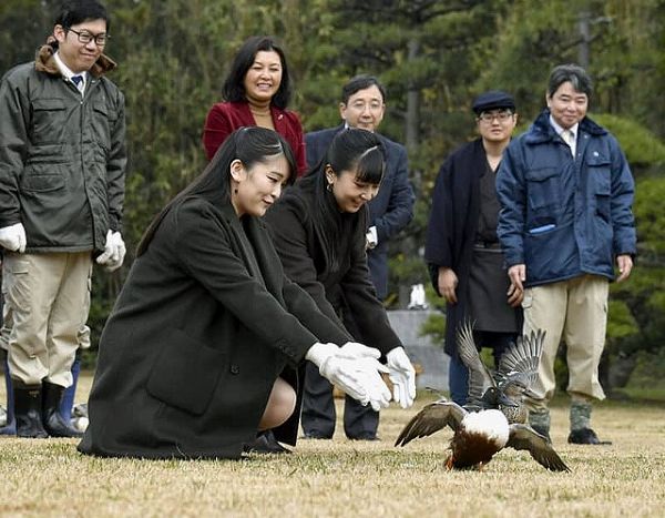 眞子さま、佳子さま2人放鳥していましたが、上手く飛べず落ちたのは眞子さまが放鳥した鴨でした。