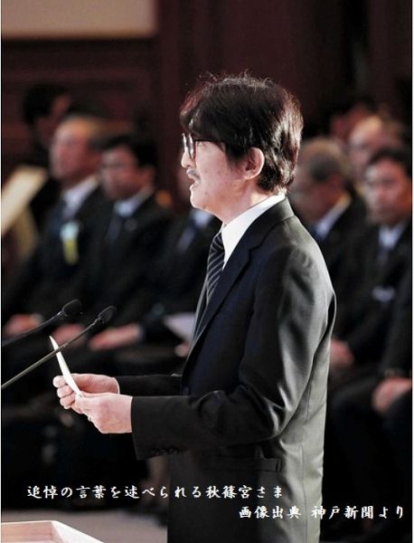 25年の節目で天皇皇后から引き継ぎ追悼式にご臨席されました。