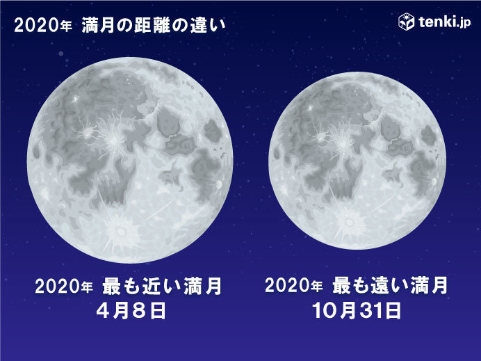 月の軌道は、わずかにだ円になっているため、地球との距離は変化していて、