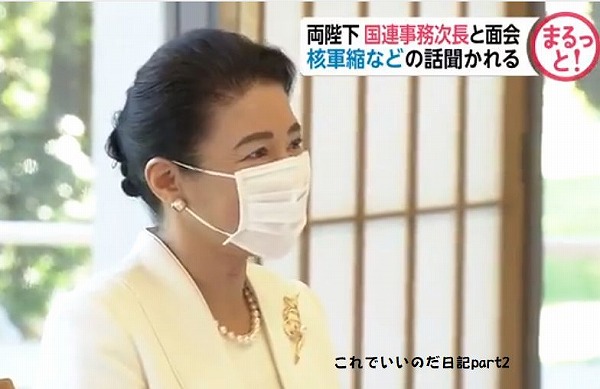 天皇皇后両陛下は今回で14回目?か15回目のご進講です。 大きな部屋に3人、テーブルも大きく密にはならないような気がするのですが、やはりマスクは外せないみたいです。国連のナンバー2からのご進講のようです。核廃止は無理な気がします。寧ろジワジワと核保有国が増えるんじゃないかな。政治的な発言が出来ない天皇陛下なので、ねぎらうことしか出来ないのかもね。