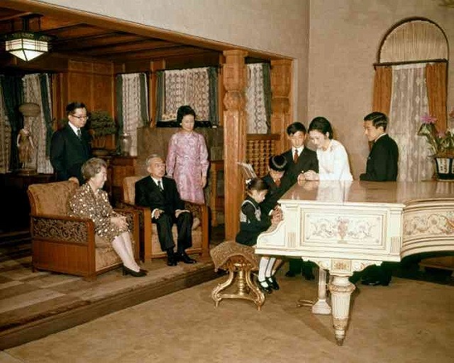 ピアノは奥にありますが、香淳皇后が演奏している最中の写真です。