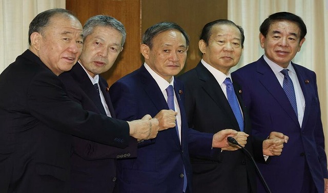 菅義偉総裁と自民党4役 平均年齢71.4歳、全員男性