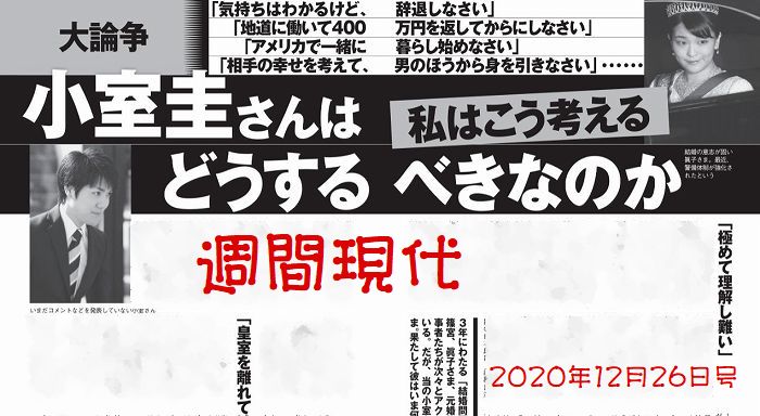 宮内庁長官の苦言、週刊現代で元婚約者の返済を求めない、