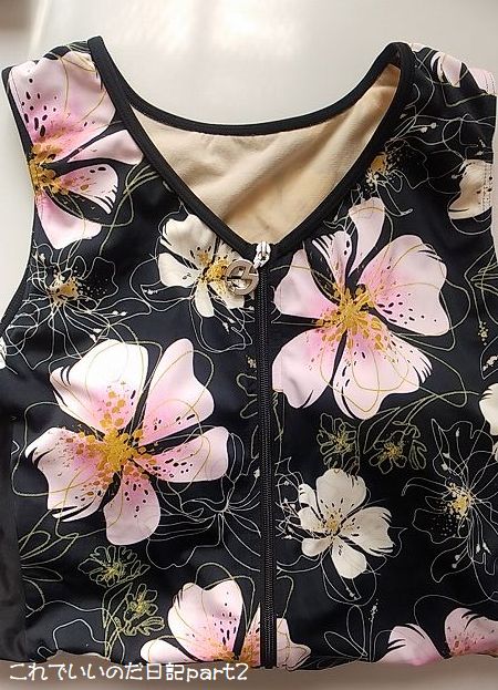 火曜日に市民プールで泳いできました。ようやく腕が回るようになり、まだまだ不完全ですがクロールと背泳ぎが出来ました。今まではワンピース型の水着を着ていましたが、今回からセパレートの水着に替えました。以前買った13号で、上は良いのだけど下がキツキツで履けなかったのが、履けるようになったので変えました。