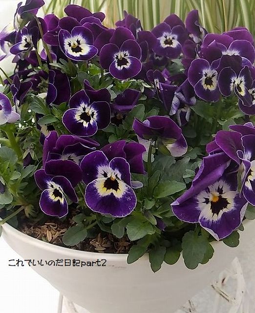 春になり裏起毛スキニーも暑くなってきたので、替わりに家では運動用に買ったトレパンを履いています。履いて楽なので黒の他に紺色も買いましたが、もう1本欲しいかも。トレパンも友の会の店で安く買いました。 イオンの後はホームセンターに寄って鉢植えに植えられていたビオラを買いました。一株70円くらいで買えるのに、鉢植えに植えられたビオラは1000円で高いのですが、この色、この模様のビオラは株で売っていなかったのでした。なんだかんだと買ってる~と思いました。