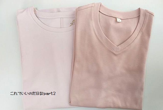 濃淡ピンク色ですが、年を取ったので明るい色の服を