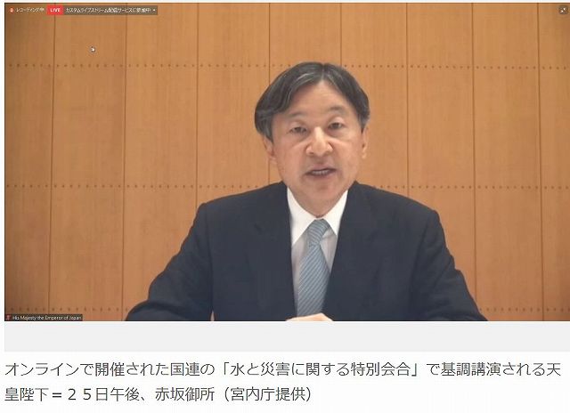 天皇陛下は25日にオンライン開催された国連の「水と災害に関する特別会合」で、26分間にわたり、新型コロナウイルス禍や災害の記憶を後世に伝える意義を訴えられた。講演は皇太子時代からの取り組みだが、ご即位後は初めて。関係者は「研究者であると同時に日本の象徴として、さらに重みのあるメッセージを世界に発信された」と受け止める。(緒方優子)記事出典 産経新聞 https://www.sankei.com/article/20210627-JLE4G4TNUVM27LDEJQ4OZBUZPE/