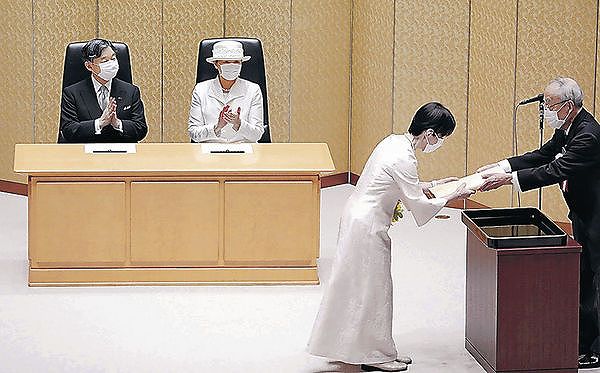 天皇、皇后両陛下は21日、東京・上野の日本学士院会館で、優れた業績を上げた研究者に贈られる日本学士院賞の授賞式に出席された。新型コロナウイルスの影響で昨年は式が実施されなかったため、今回は20年に受賞した研究者も参加した。天皇陛下はおことばで、受賞者を祝福した上で新型コロナ禍に触れ、「学問諸分野の叡智(えいち)を結集し、世界の人々が互いに力を合わせることにより、この困難な状況を乗り越え、希望に満ちた未来を築いていくことを期待します」と述べた。