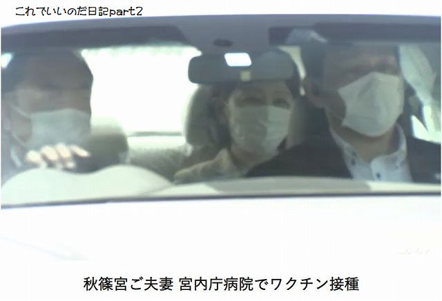 追記  今しがたヤフーニュースを見たら、秋篠宮ご夫妻と佳子さまがワクチン接種されたとの事でした。眞子さんの名前が無かったので、眞子さんは打っていないか?職域接種で既に接種したのかな?もっと早く接種してオリンピック開会式に秋篠宮ご夫妻、佳子さまも出席されたら良かったのになぁ~と思いました。