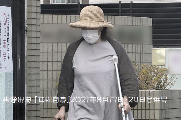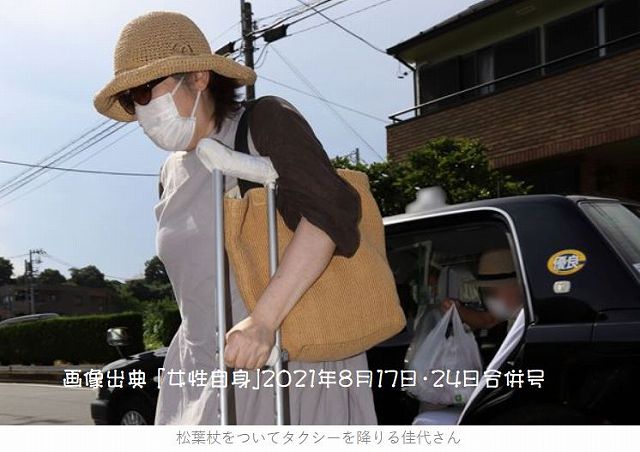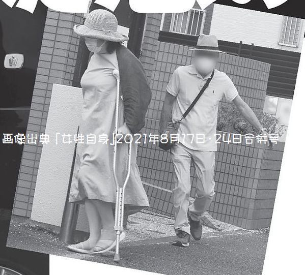 7月29日、女性自身の記者が佳代さんの元を訪ねた。1台のタクシーが自宅マンション前に止まると、マンションから出てきた佳代さんは、左手で松葉杖をついていた。同居している実父(小室さんの祖父)と一緒にタクシーで駅に向かい、電車に乗り込んだ。