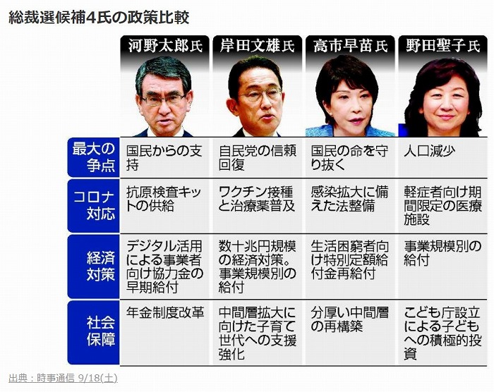 自民党総裁選、野田聖子さんは当選しないと思いますが、河野さんが当選すると危ないですね。