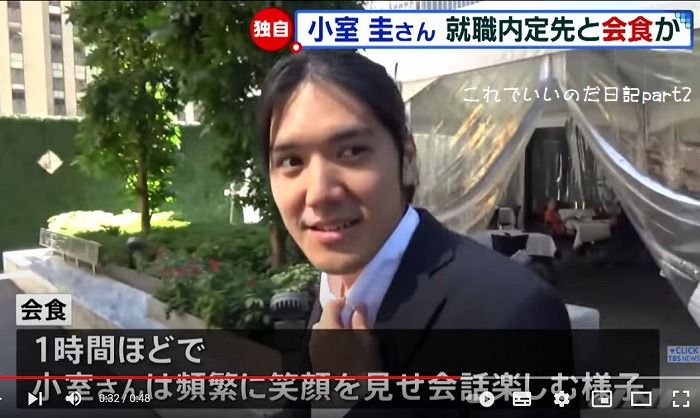 昨日のフジテレビの小室圭近況リークに刺激されたか、各マスコミが一斉に動き出したような状態です。TBSニュースではマスク無しの小室圭が就職内定先と会食か、で映像を出しました。やっぱり日本に居た時より痩せて精悍な顔立ちにはなり、自分に自信をつけたようにも見えます。NYはネットで見るとヘアスタイル、体形、人種などあれこれ言わないと書かれていました。なので、このヘアスタイルも小室圭の個性のひとつとして見ているのでしょうか。 フジテレビのリーク映像より少しは表情が柔らかい、とはいえ一瞬怖い非常も見せています。 是非動画を見てください。日テレNEWSでは、小室圭が既に就職をしていると報じました。 マスコミからどんどん情報が出てきます。