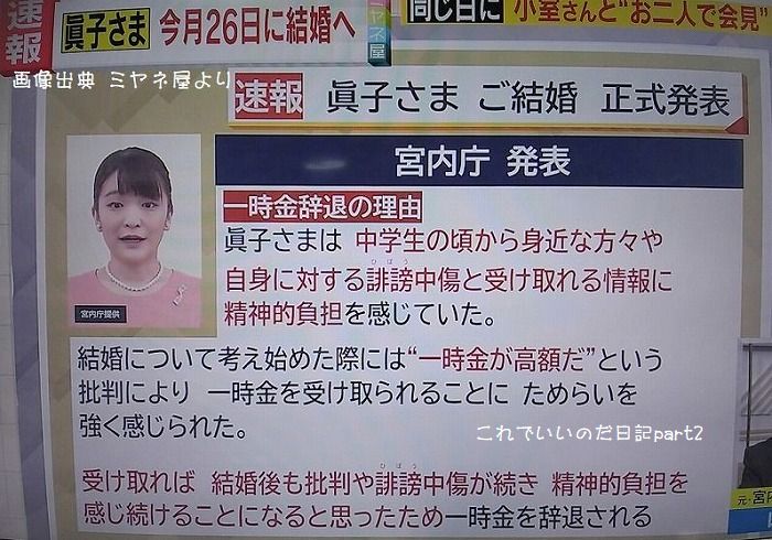 さて、眞子さまの結婚発表ですが