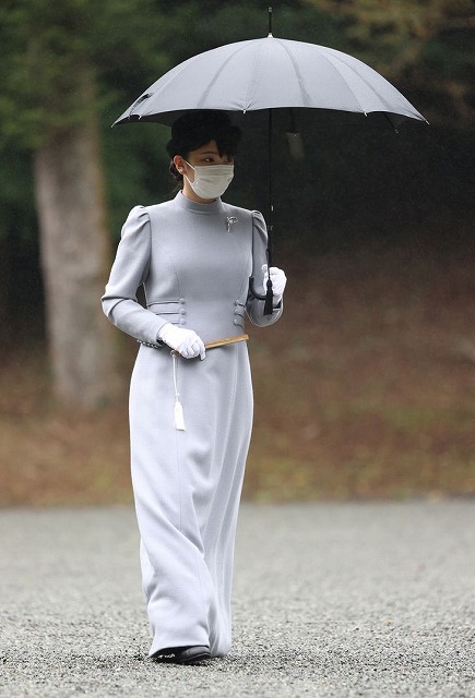 12日午前、参拝服にマスク姿の眞子さまは、陵に向かって深々とご拝礼。参拝を終え、車に乗り込む際には、報道陣に会釈で応じられていた。眞子さまは26日、小室圭さん(30)との婚姻届を提出し、記者会見される。結婚に伴う儀式や結婚式を行わないため、天皇、皇后両陛下や上皇ご夫妻には私的にあいさつをされる予定。
