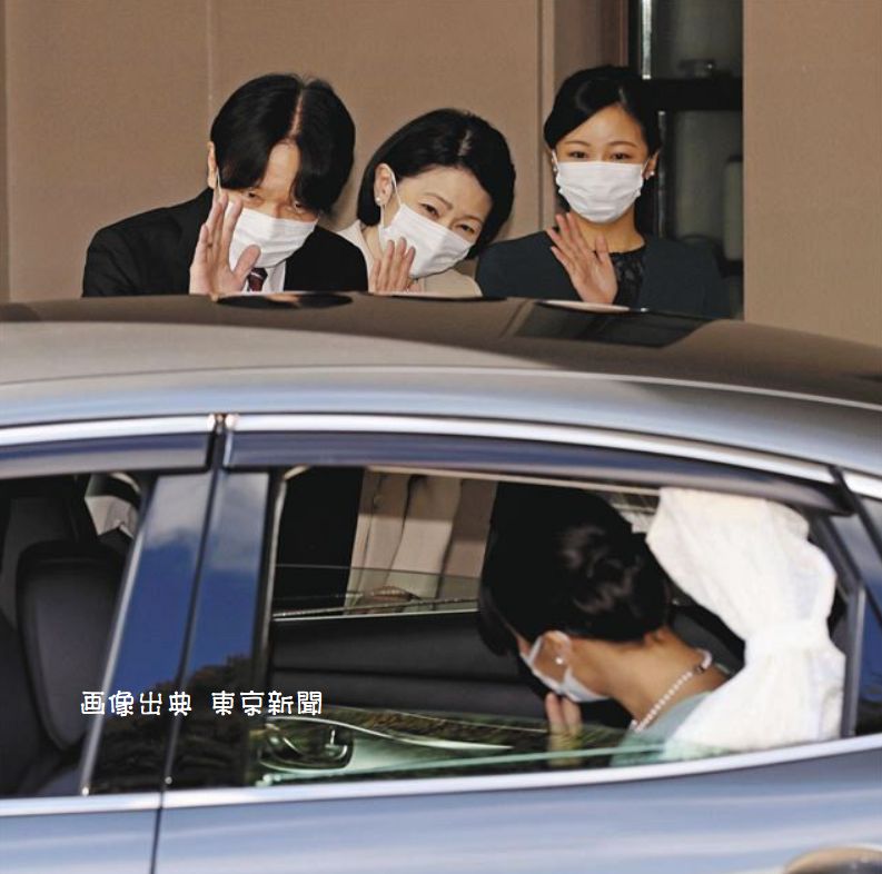 秋篠宮家の少数の職員とご家族に見送られ、秋篠宮邸を後にする。こんな形で眞子さんが嫁いでいくとは、改めて小室親子が憎い。言葉に表せないほどの悲しい眞子さんの降嫁でした。