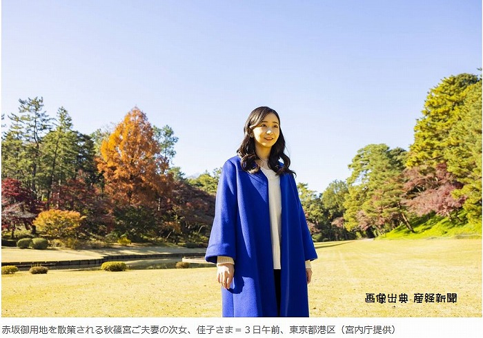 12月3日に撮影されたそうで天気の良い日です。姉の眞子さんが小室圭氏と結婚したことについては、「姉の願いが叶い結婚されたことをとても嬉しく思い、これからのお幸せを心から願われている」