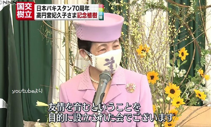 高円宮妃久子さまは、日本とパキスタンの国交樹立70周年を記念し、植樹をされました。久子さまは28日、日本とパキスタンの国交樹立70周年を記念したイベントで、桜の木の植樹にのぞまれました。パキスタン大使館と久子さまが名誉総裁を務める、「いけばなインターナショナル」が主催したものです。「いけばなインターナショナルは、戦後、平和を願って花を通して、友情を育むということを目的に設立された会でございます」久子さまはこのように述べ、両国の友情の証しである桜が、パキスタンの人によって育まれ、たくさんの花をつけてほしいと願われました。さらに、ウクライナで子供を含む民間人の犠牲が出ていることなどにも触れ、人と人との関係を育む大切さに言及されました。記事出典 日テレNEWS