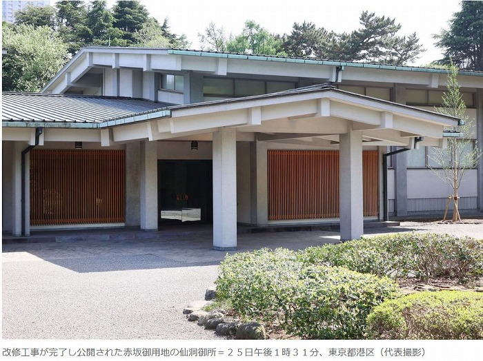 宮内庁は25日、上皇ご夫妻の新たなお住まいとなる旧赤坂御所(東京都港区)の内部を公開した。ご夫妻は26日に入居される予定で、名称は同日、「仙洞(せんとう)御所」と改められる。建物は「私室部分」「事務部分」など3種類に区分され、公開されたのは、来客対応などを行う「公室部分」。昨年9月に天皇ご一家が皇居内の御所に転居されて以降、天井のクロスや壁紙のはり替えが行われ、来客用のトイレもオストメイト(人工肛門、人工ぼうこう利用者)対応とした。非公開の私室部分も、エレベーターを設置するなどバリアフリー化。事務部分の改修工事はご夫妻のご入居後も続き、完成は6月ごろとなる見通し。記事・画像出典 産経新聞 https://www.sankei.com/article/20220425-VHCMFOPPZBIBPPZYFE2EW2BVUE/
