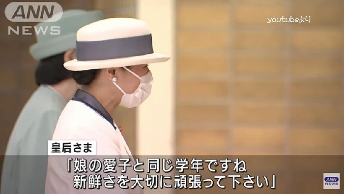 赤十字ボランティアに取り組む大学生に「娘の愛子と同じ学年ですね、新鮮さを大切に頑張ってください」とのお言葉。雅子さまは愛娘愛子さまの名を出す事がある方です。 その愛子さまもそろそろ大学に通学されても良いんじゃないかと思います。こうしてご両親は時々外に出ているんだし若い愛子さまが引きこもりではお気の毒です。