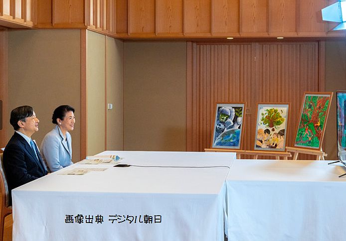 天皇、皇后両陛下は5日両陛下が植樹祭にオンラインで参加されるのは、昨年に続き2回目。御所の前に会場を設営し、両陛下のお姿を現地にライブ中継する形で行われた。天皇陛下は式典で、「これからも健全な森林を育み、木々を木材として循環利用しながら、次の世代、またその次の世代へと引き継いでいくことは、私たちの果たすべき大切な使命であると考えます」とお言葉を述べられた。その後、皇后さまとともに、スギやイロハモミジをご植樹。陛下は木の説明などを担当した子供らに対し、「くれぐれも体に気を付けて、実り多い学校生活を送ってください」とねぎらわれた。式典の後、両陛下は植樹祭や緑化啓発のポスター原画コンクールの入賞作品を鑑賞し、制作した子供らと画面越しにご交流。陛下は「工夫の跡が見られていいですね」、皇后さまは「力強くて躍動感がありますね」などと言葉をかけられた。記事・画像出典 産経新聞・デジタル朝日 https://www.sankei.com/article/20220605-AUXX3AVQ7NO3DFDAE4NFAK2AWA/