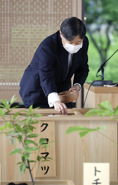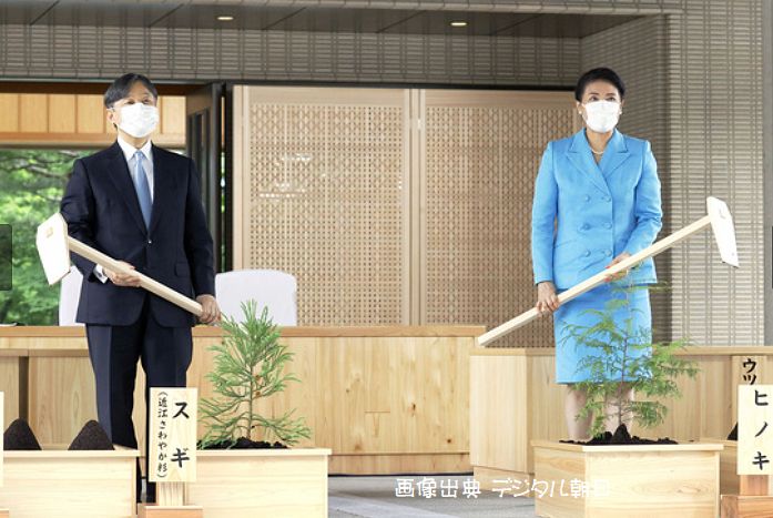天皇皇后夫妻は御所の玄関先でオンライン植樹をしたのかしら。