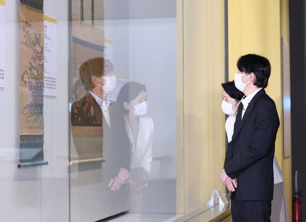 秋篠宮ご夫妻は17日、東京国立博物館(東京都台東区)を訪問し、沖縄の日本復帰50年を記念して開催中の特別展「琉球」を鑑賞された。ご夫妻は沖縄の歴史や文化を紹介する着物や絵画を見学し、担当者の説明を聞きながらのぞきこむようにご覧に。秋篠宮さまは鳥や花を描いた絵画に関心を寄せ、描かれている鳥の種類などについて熱心に質問されていた。記事・画像出典 産経新聞https://www.sankei.com/article/20220617-FNML4G3GWFOUBNDBEQRQDCZHTM/
